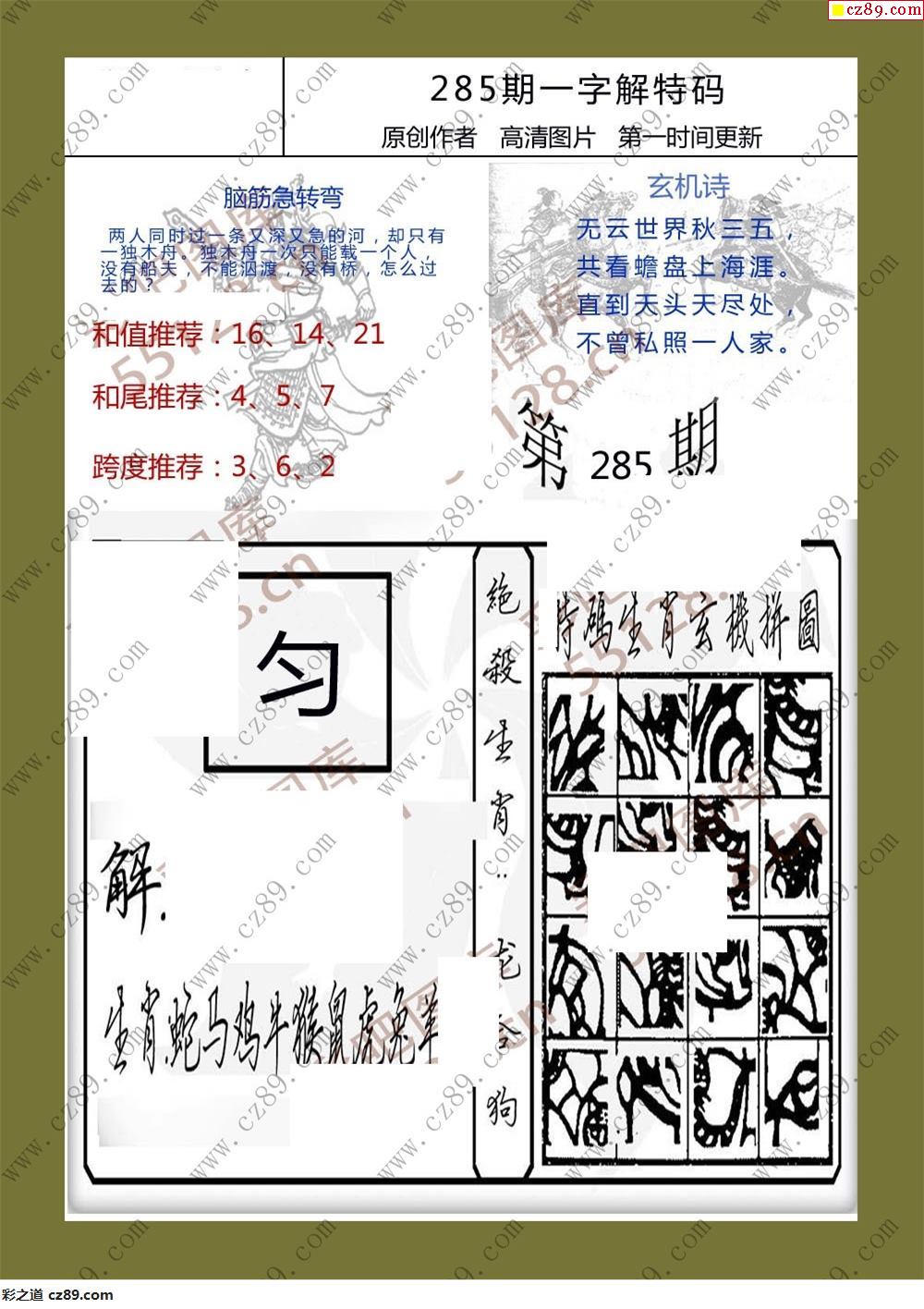 25年285期一字解特码福彩3d彩报