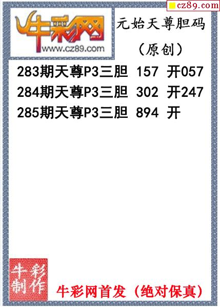 > 元始天尊胆码图285期体彩P3图谜(原创)