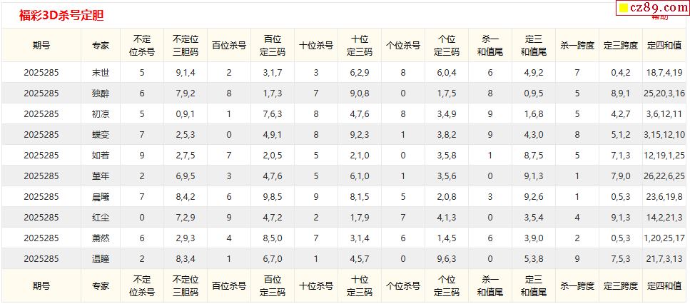 > 25年285期彩宝贝专家福彩3D杀号定码图表