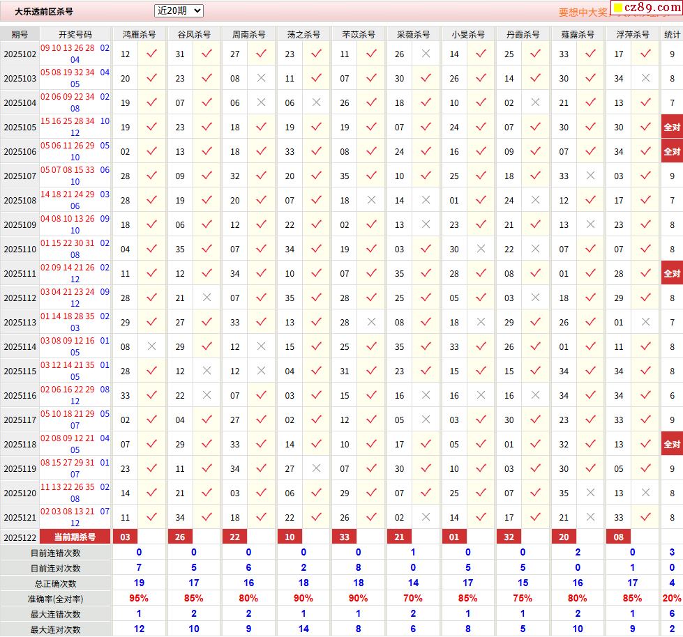 > 25年122期彩票专家超级大乐透前后区杀号图表
