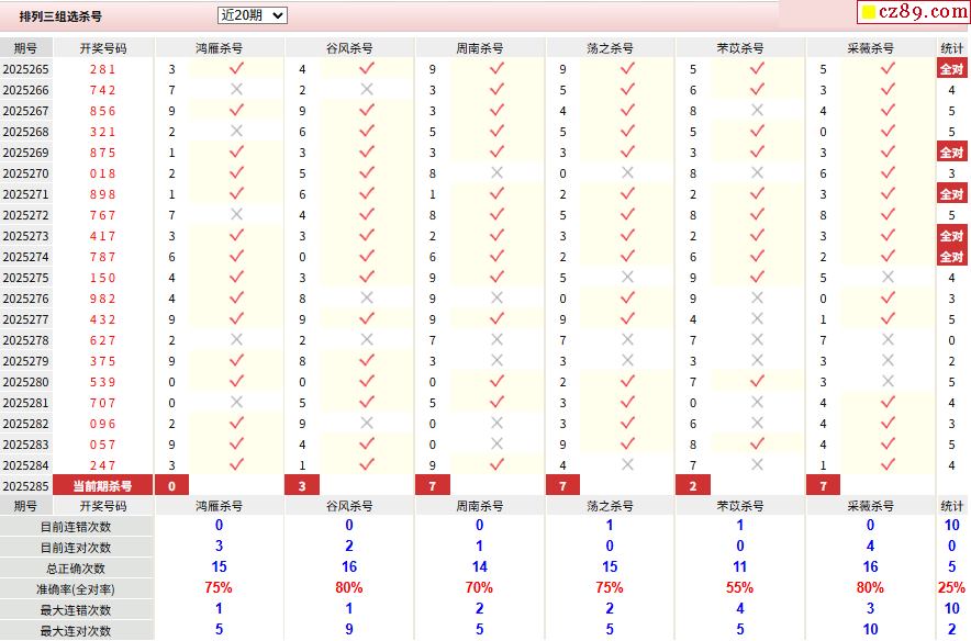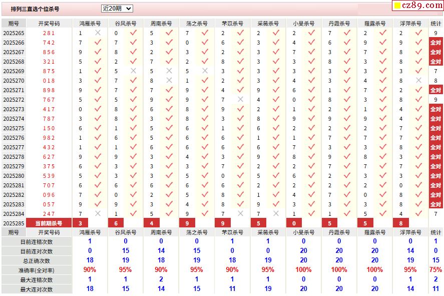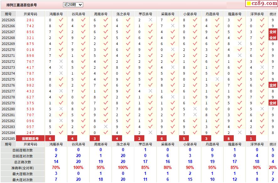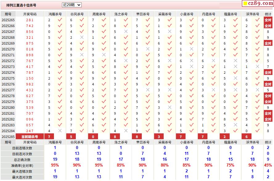 > 285期彩票专家体彩P3杀号推荐图表